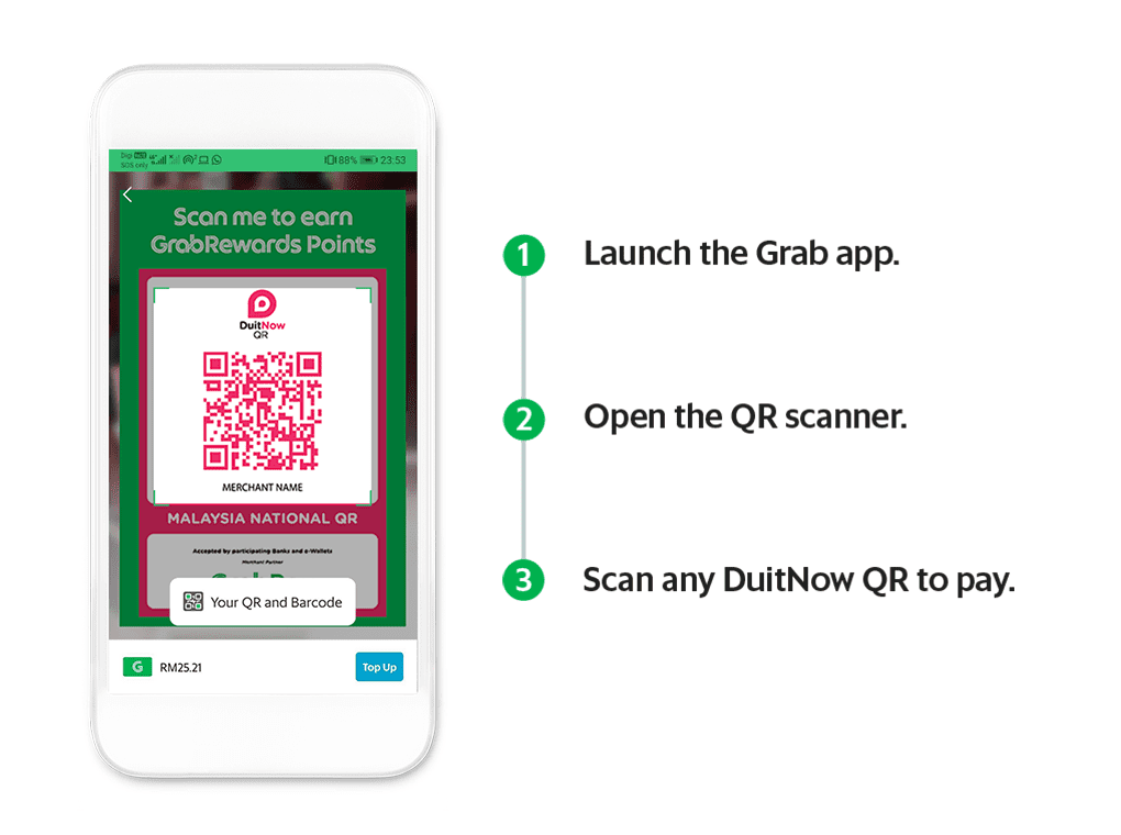The GrabPay DuitNow QR code is simple to use. GrabPay users simply launch the Grab app, open the QR scanner and scan any DuitNow QR code to pay. With Grab’s  Merchant Discovery, GrabRewards and Save with Points features, GrabPay users can easily identify GrabPay DuitNow Preferred Merchants, earn points and save money on every transaction.