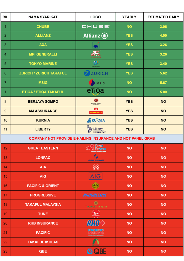Tanpa insurans ini, anda tidak dibenarkan membawa penumpang dan tidak dilindungi jika berlaku kemalangan. Ia adalah syarat wajib oleh JPJ, syarikat insurans, dan Grab.